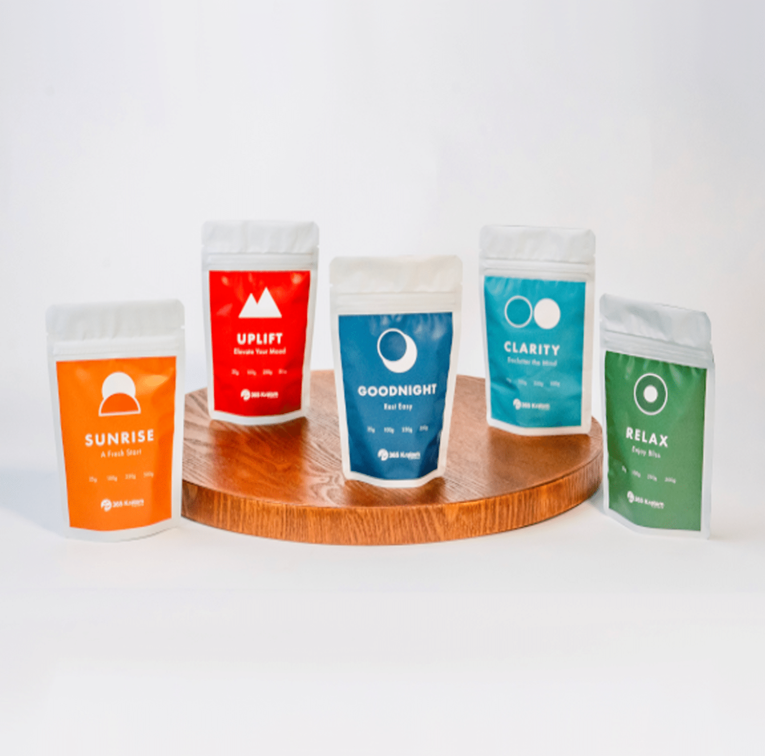 Included in the mini bundle are 5 x 25 gram bags of your choice from our 5 uniquely crafted blends: Sunrise, Clarity, Relax, Goodnight and Uplift.